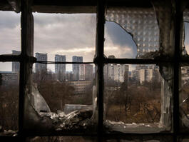 During the first months of the war in Ukraine, Jérôme Sessini photographed the Russian invasion and its consequences. At the end of March, for The New Yorker, he documented the destruction by a Russian attack of a building in Chornobylska 9A, a neighborhood in Kiev. Most of the residents were not physically affected by the attack, and Sessini went with them to retrieve their belongings...
