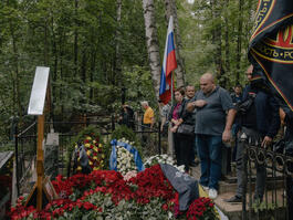 Mourners gathered in Moscow's Red Square at a makeshift memorial set up after the death of Yevgeny Prigozhin, head of the Wagner mercenary group. Prigozhin and nine others died in a plane crash on August 23rd, 2023.