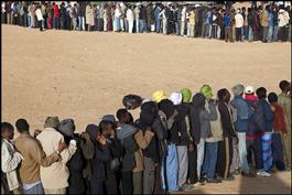 TUNISIA. April 2011. Border with Libya. Refugee camp at Ras Jdir....