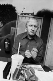 ENGLAND. London. King's Cross. Summer 2000. A man eats at a fast...