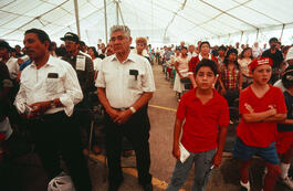 USA. California. 1988. Crowd at the United Farm Workers service...