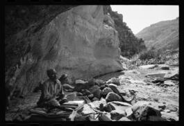 Françoise Claustre dans la palmeraie de montagne de Modra.