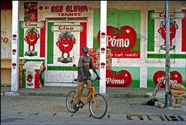 Ghana. Cape Coast. Bold advertising for imported tomatoes which...