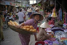 Vietnam. My Tho. A woman with her small child waits patiently...