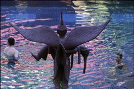 Cambodia. Siem Reap. The swimming pool with its Garuda statue...