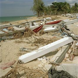 THAILAND. Khao Lak. Resort hotel debris on the beach after the...