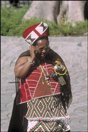 SOUTH AFRICA. Cape Town. Using a mobile phone in the center of...
