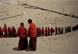 INDIA. Ladakh. Leh. Buddhist temple. Carrying the sacred texts...