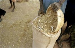 NIGER. Tajae. Packing millet, a main staple. 2005.