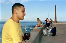 URUGUAY. Punta del Este. Drinking 'Maté', a popular type of herbal...