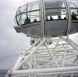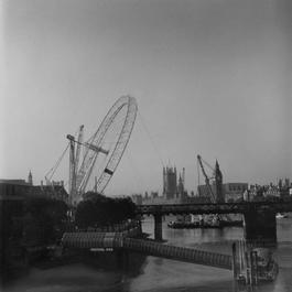 GB. London. The London Eye being hoisted into it's vertical position,...