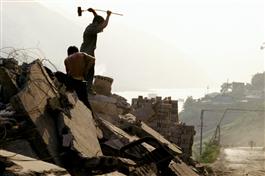 CHINA. Sichuan. Wanxian. Workers demolish homes in an area about...