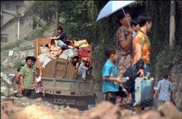 Asia. China. Sichuan. Wanxian. Families moving out to new...