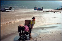 CHINA. Sichuan. Wanxian. Children play in the mud of the Yangtze...