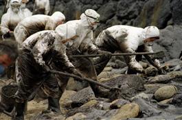 SPAIN. Galicia. Muxia. Spilled oil from the tanker Prestige...