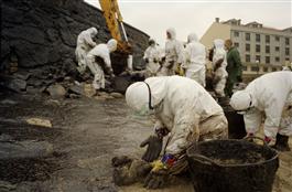 SPAIN. Galicia. The Prestige Oil Spill. Larino Beach, near O'Grove....