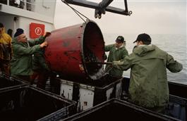 SPAIN. Vigo. Spanish fishermen in the Atlantic off Vigo haul...