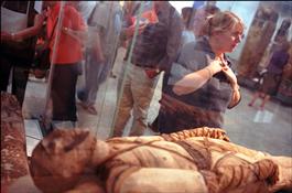 GB. England. London. John Osborne packs away a Peruvian mummy...