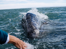 MEXICO. San Ignacio, Baja California Sur. 2020. Migrating gray...