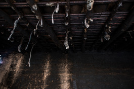 MEXICO. Tixtla, Guerrero. 2016. Spiderwebs in the kitchen of...