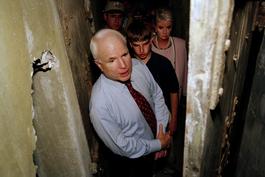 VIETNAM. Hanoi. US Senator John MCCAIN examines the remains of...