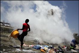 KENYA. 2014. Olkaria. A Masai woman washes her clothes in the...