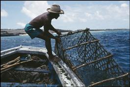 A man "basket fishes" on the Isle Rodrigues, 650 kilometers from...