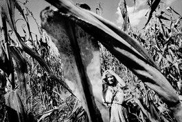 MEXICO. San Miguel Cuevas, Oaxaca. 2006. A girl harvests corn...