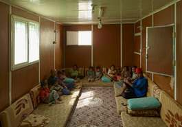 Jordan. Near Mafraq. Za'atari Syrian Refugee Camp. Inside a hut....