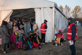 SLOVENIA, 6/11 2015. Slovenian Red Cross workers assist migrants...