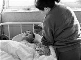 CHINA. Beijing. Songtang Senior Hospital. Nurse chatting to a...