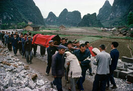 CHINA. Guangxi. 1980. Xingping, near Guilin. A funeral cortege....