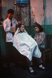 CHINA. Sichuan. Chengdu. 1980. A coiffeur shop.