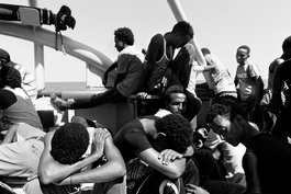 Eritrean migrants, rescued at sea by a M.decins Sans Fronti.res...