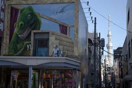 JAPAN. Tokyo Sky Tree from Asakusa district seen from outside...