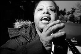USA. Detroit, Michigan. March 2009. Sandra HINES on bullhorn...