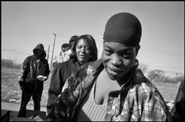 USA. Detroit, Michigan. 2009. Getting sandwiches outside the...