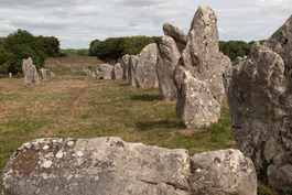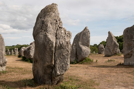 France. Carnac. 2018. Stone neolithic megaliths formed in alignments...