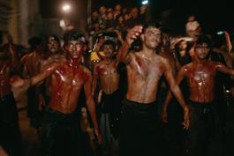 MYANMAR (Burma). Yangon (Rangoon) 1995. Shia youth mourn the...