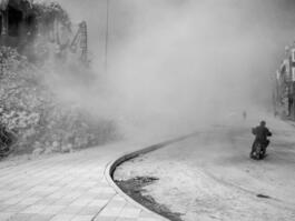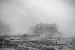 IRAQ. Mosul. January 12, 2019. Smoke from burning trash fills...