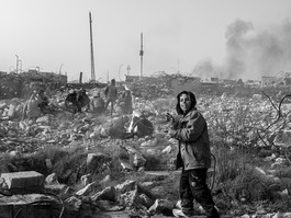 IRAQ. Mosul. January 14, 2019. Young boys working as scavengers...