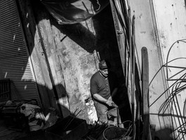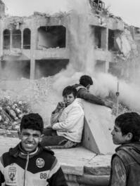 IRAQ. Mosul. January 19, 2019. Young boys working as scrap hunters...