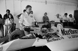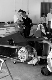 Ayrton SENNA explains to a mechanic a flap problem of his HONDA...