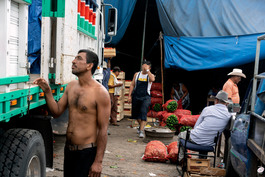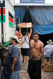 EL SALVADOR. San Salvador. 4 October, 2018. Merchants working...