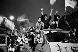 CHINA. Beijing. Tiananmen Square. Protesters drive around the...