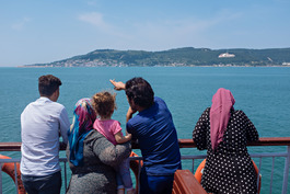 Turkey. Canakkale. 2018. A family admires the view of the Gallipoli...