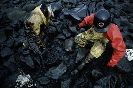 USA, Alaska. Prince William Sound. 1989. The clean-up of the...