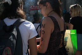 CANADA. Vancouver, BC. 2018. Student protestors in front of Vancouver...