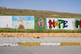 IRAQ. Bashiqa. 2017. A repainted wall with bullet holes in Bashiqa....