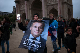 FRANCE. Paris. May 7, 2017. Emmanuel Macron ("En Marche!") supporters...